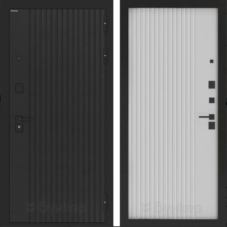 Черная матовая: Броненакладкая, сувальдные накладки со шторкой, ручка, ночник, цилиндр ключ-вертушка, глазок по центру или сбоку